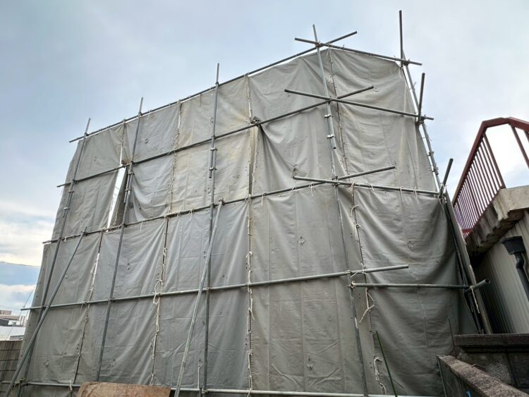 施主様がお住まいになられながらの離れの解体工事になりましたので、施主様やお客様の出入りには十分注意して作業を行いました。